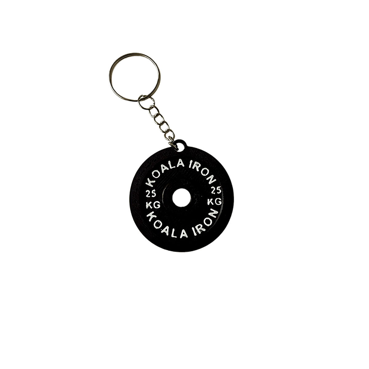 LLavero personalizado creado en impresora 3d con forma de disco de 25 Kg.