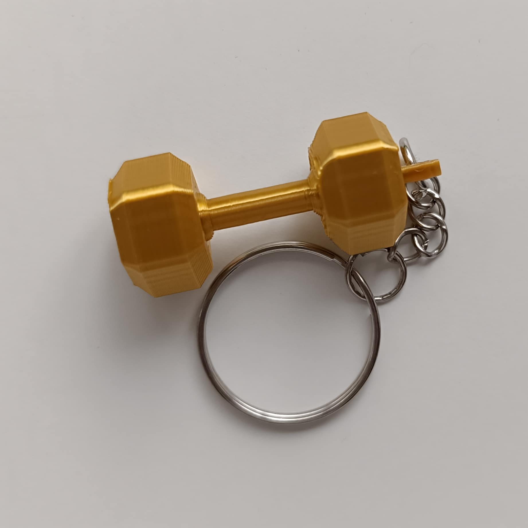 Llavero en forma de mancuerna.